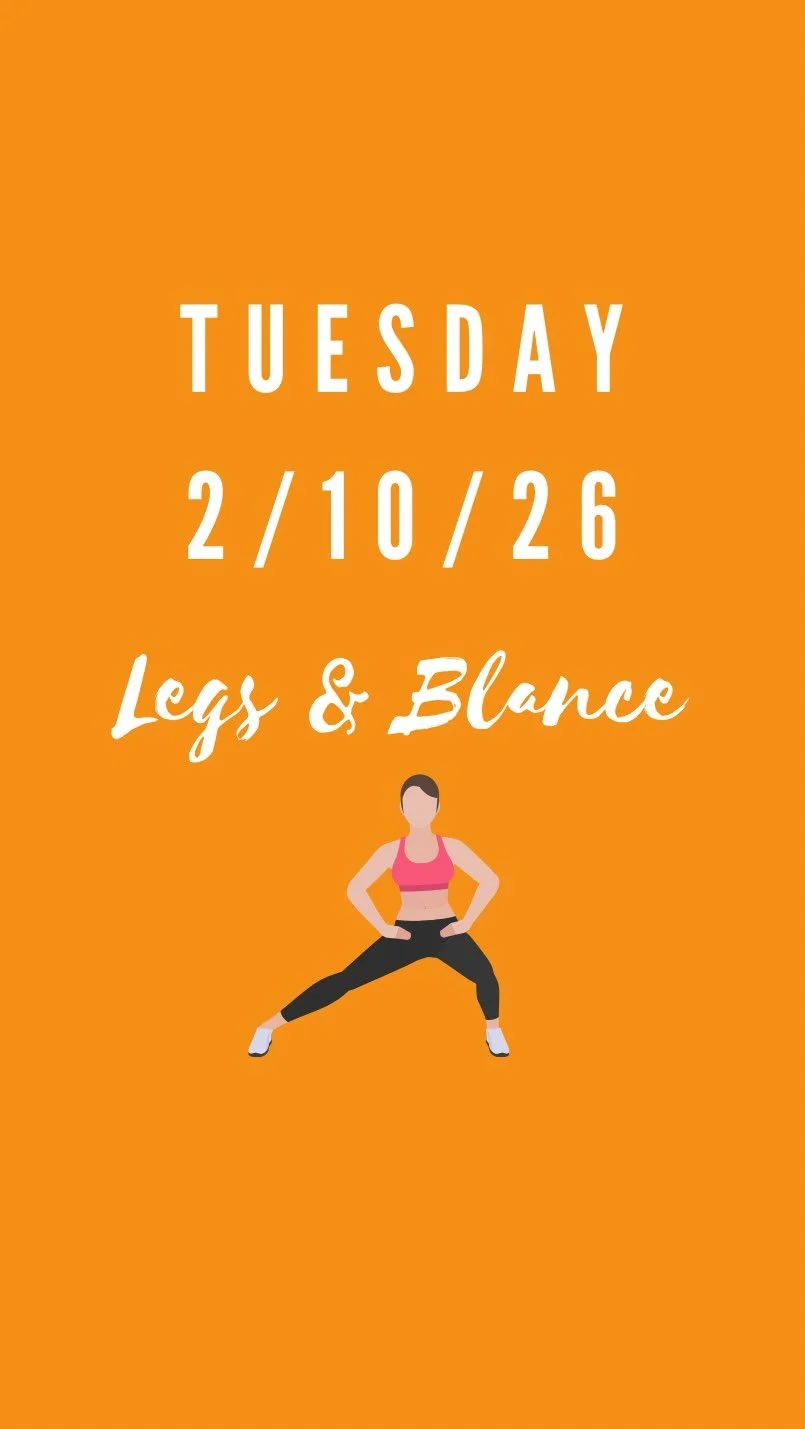 Tuesdays we focus on leg strength and balance. Move through the day stronger, taller, and more grounded!