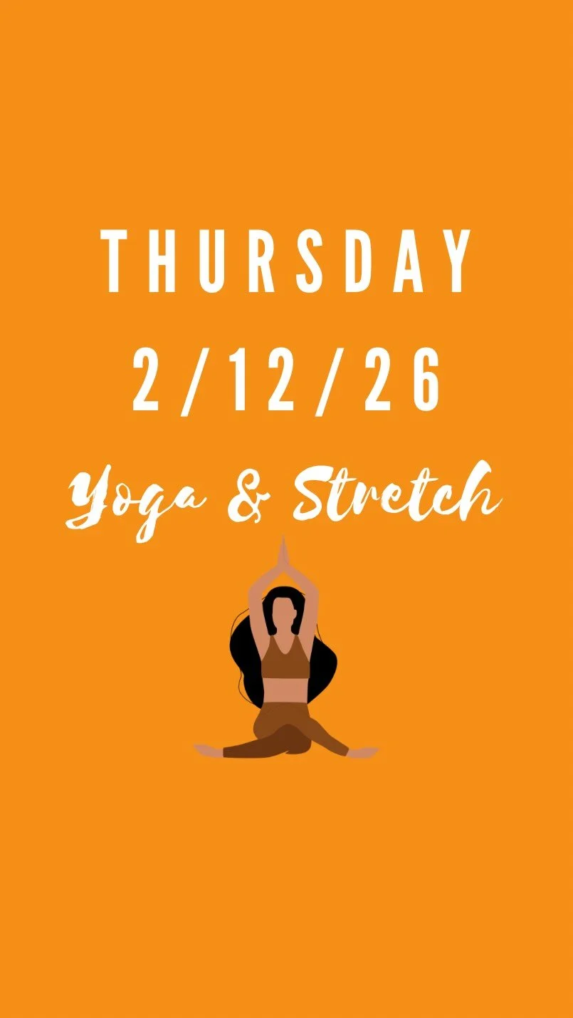 Thursdays rejuvenate you with yoga and stretching. You will flow into your weekend feeling calm and centered!