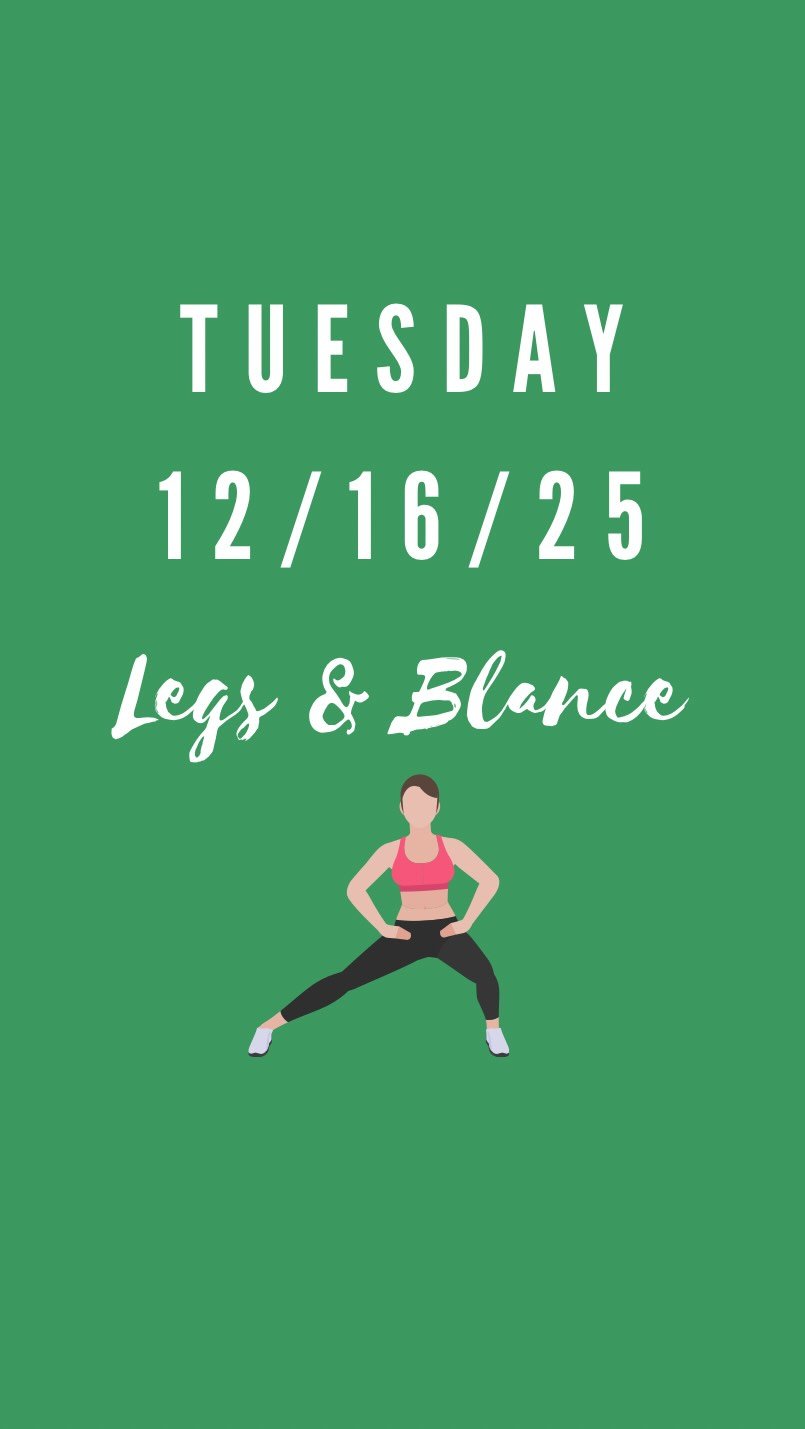 Tuesdays we focus on leg strength and balance. Move through the day stronger, taller, and more grounded!